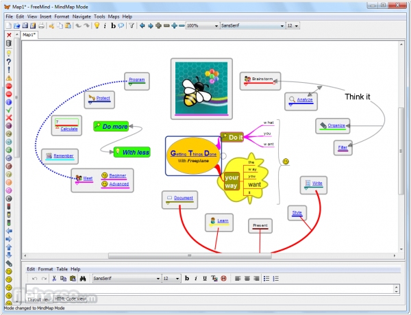 FreeMind is a premier free mind-mapping software written in Java. The recent development has hopefully turned it into high productivity tool. We are proud that the operation and navigation of FreeMind is faster than that of MindManager because of one-click "fold / unfold" and "follow link" operations.