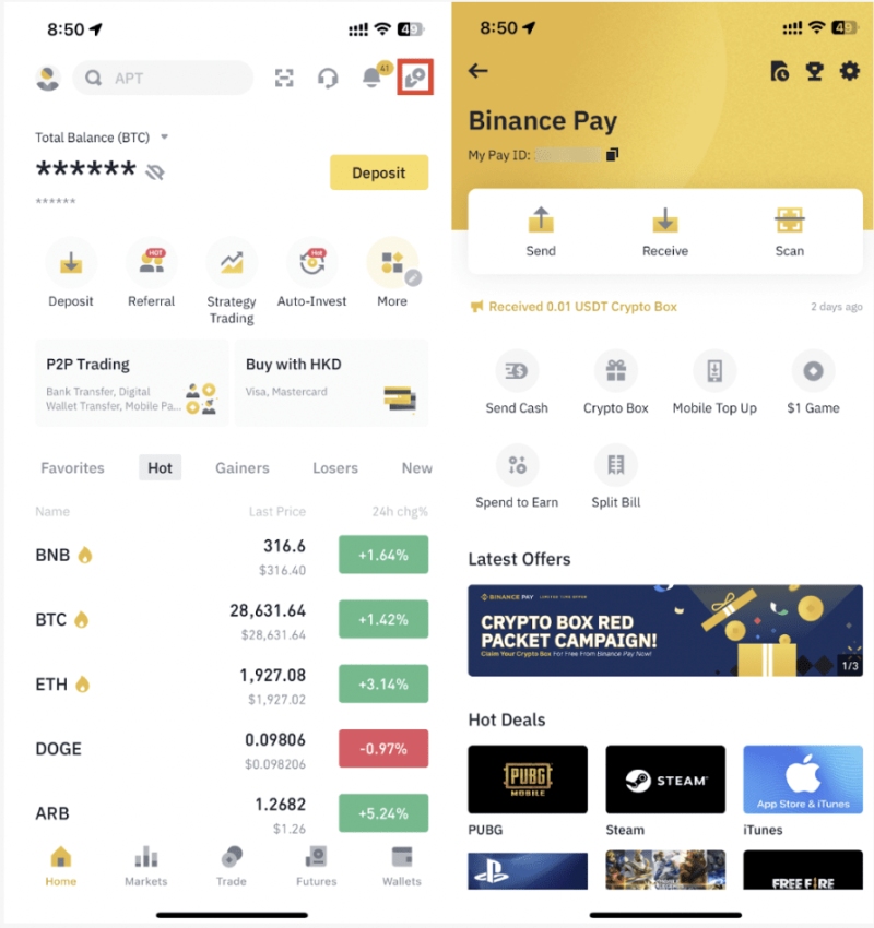 Binance Pay is a contactless, borderless and secure cryptocurrency payment technology designed by Binance. Shop with crypto or send crypto to friends and family worldwide. Binance pay is available to all eligible users on Binance.com. Binance Card allows you to convert and spend cryptocurrencies at more than 60 million online and offline merchants worldwide.