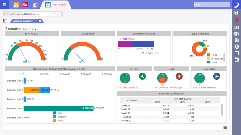 Enterprise PPM software that allows to manage multiple complex projects at the same time.