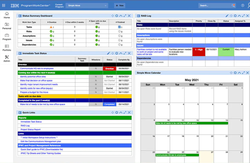 IBM Program Work Center is a collaborative program and project management solution offered as a Software-as-a-Service (SaaS) application. It reduces the risk and complexity of running large-scale projects, programs, initiatives and transformations.